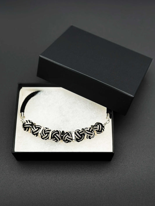 Kumihimo Silk Braided Necklace -Black&Silver-